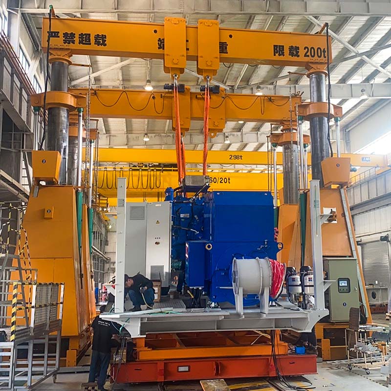液压龙门吊作为一种重要的ag九游会j9集团设备,具有多方面的优势。首先,它拥有强大的ag九游会j9集团能力,最大ag九游会j9集团量可达上千吨,满足各种重型货物的吊装需求。其次,液压系统提供了精确的控制,能够平稳且精准地升降和移动货物,确保操作的安全性和高效性。此外,液压龙门吊的结构设计紧凑,占用空间小,特别适合在空间受限的环境中作业。