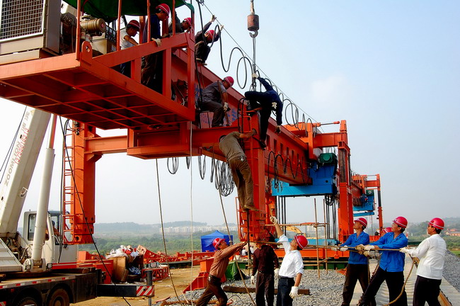 1、架桥机具有拆装式结构,可以依据现场施工的各种各样的条件来改变它的结构,所以其具有十分强的适应能力。