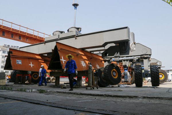 之前,我们善于生产的液压龙门吊,固定式、移动式的都有,最大ag九游会j9集团量可达上千吨。近期,靖起接到了客户的一个折叠式移动液压龙门吊,正在如火如荼的安装中,设备外形还是比较大的,首先是四个大型轮子,就能想象其承载能力比较强的,我们生产的是200吨位的。对于我们公司,是一个尝试、挑战与进步,只有研发新的产品,才能走的更远,只有不断摸索中,技术才会不断进步。在安装过程中,遇到问题,我们的技术团队、电器工程师、安装人员、生产人员都会共同探讨,寻找最优解决方案。
