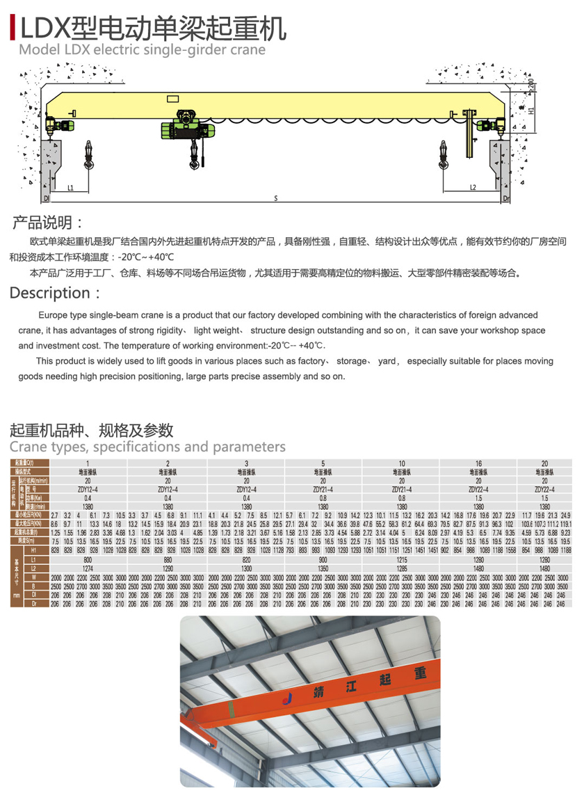 欧式单梁ag九游会j9集团机是我厂结合国内外先进ag九游会j9集团机特点开发的产品,具备刚性强,自重轻、结构设计出众等优点,能有效节约你的厂房空间和投资成本工作环境温度:-20℃~+40℃。