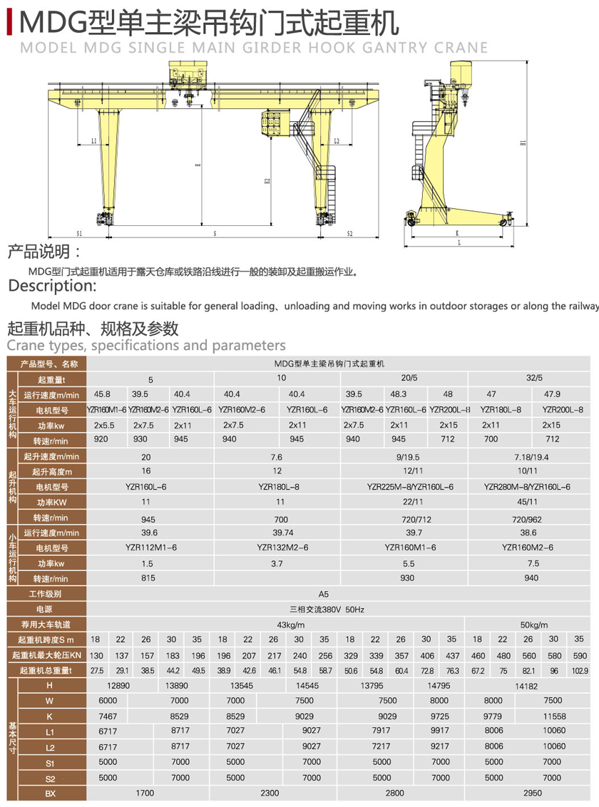 MDG型单主梁吊钩门式ag九游会j9集团机选用注意事项: