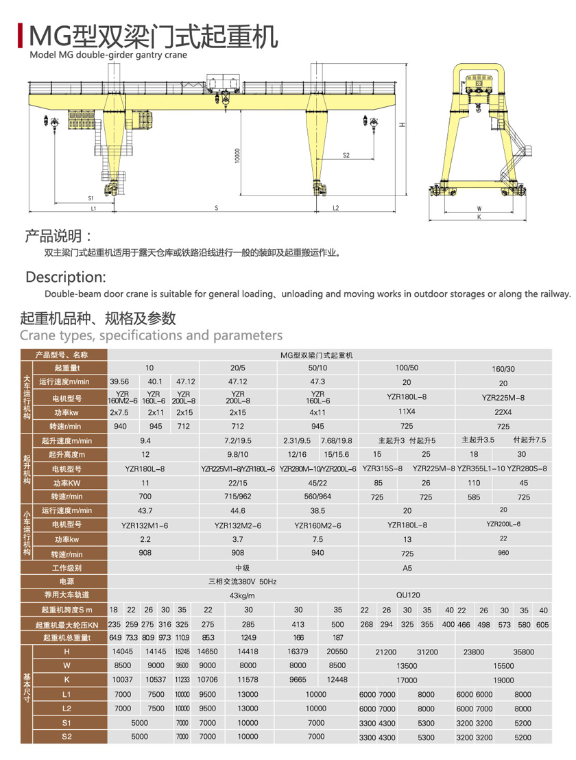 双主梁门式ag九游会j9集团机适用于露天仓库或铁路沿线进行一般的装卸及ag九游会j9集团搬运作业。