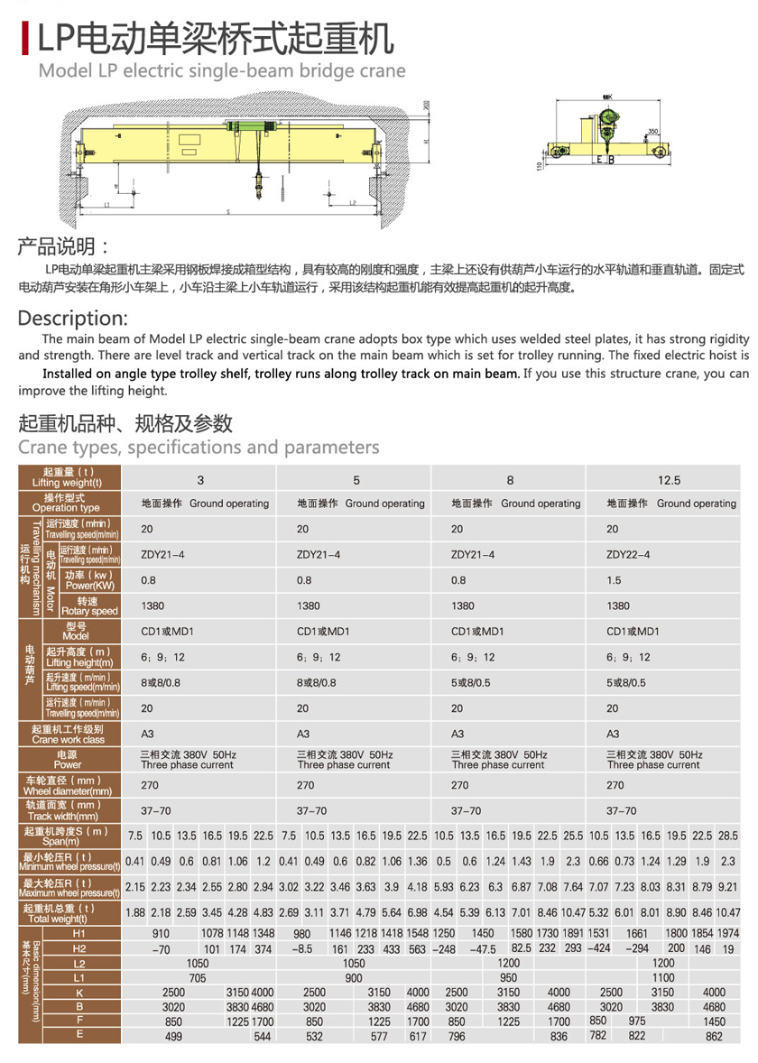 LP低净空电动单梁ag九游会j9集团机环境条件: